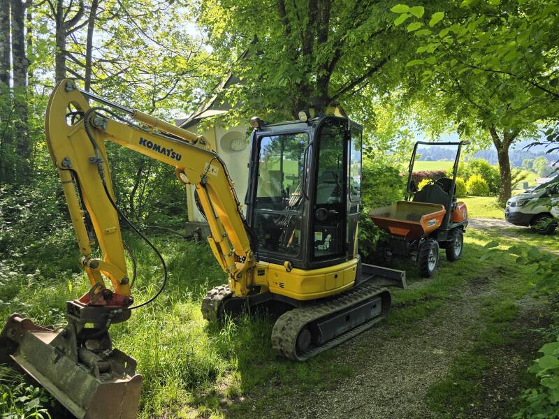 Mit unserem Minibagger können wir präzise arbeiten – ideal für Privatgärten, kleine Bauflächen und jede Art von Gartenbauprojekt.